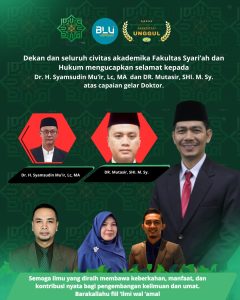 Dekan dan seluruh civitas akademika Fakultas Syari’ah dan Hukum mengucapkan selamat kepada Dr. Mutasir, S.H.I., M.Sy. atas capaian gelar Doktor.