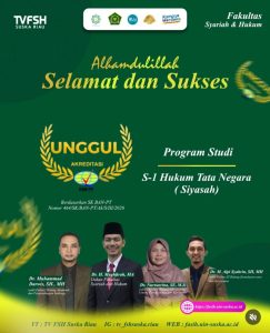 Pekanbaru-Gelombang kebanggaan dan semangat membara menyelimuti Fakultas Syariah dan Hukum (FSH) UIN Sultan Syarif Kasim Riau. Program Studi Hukum Tata Negara (Siyasah) resmi meraih Akreditasi Unggul, sebuah capaian prestisius yang menjadi bukti nyata dedikasi, kerja keras, dan kolaborasi tanpa batas seluruh sivitas akademika.