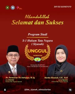 Pekanbaru – Gurindam “Cahaya Mutu” yang ditulis oleh Ketua Program Studi Hukum Tata Negara (Siyasah), Dr. Darmawantia Indra Jaya, M.A, kini bukan lagi sekadar rangkaian kata penuh makna, tetapi telah menjelma menjadi simbol nyata dari keberhasilan besar: Akreditasi Unggul.