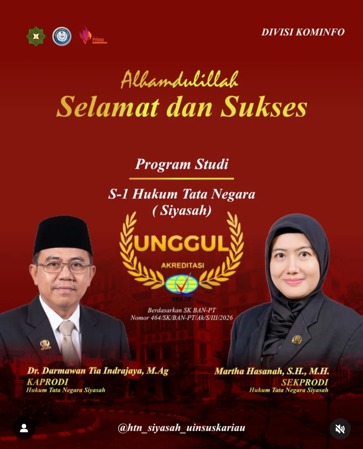 Ketua Prodi HTN Siyasah, Dr. Darmawantia Indra Jaya, M.A, menyampaikan rasa syukur sekaligus kebanggaannya atas capaian ini.