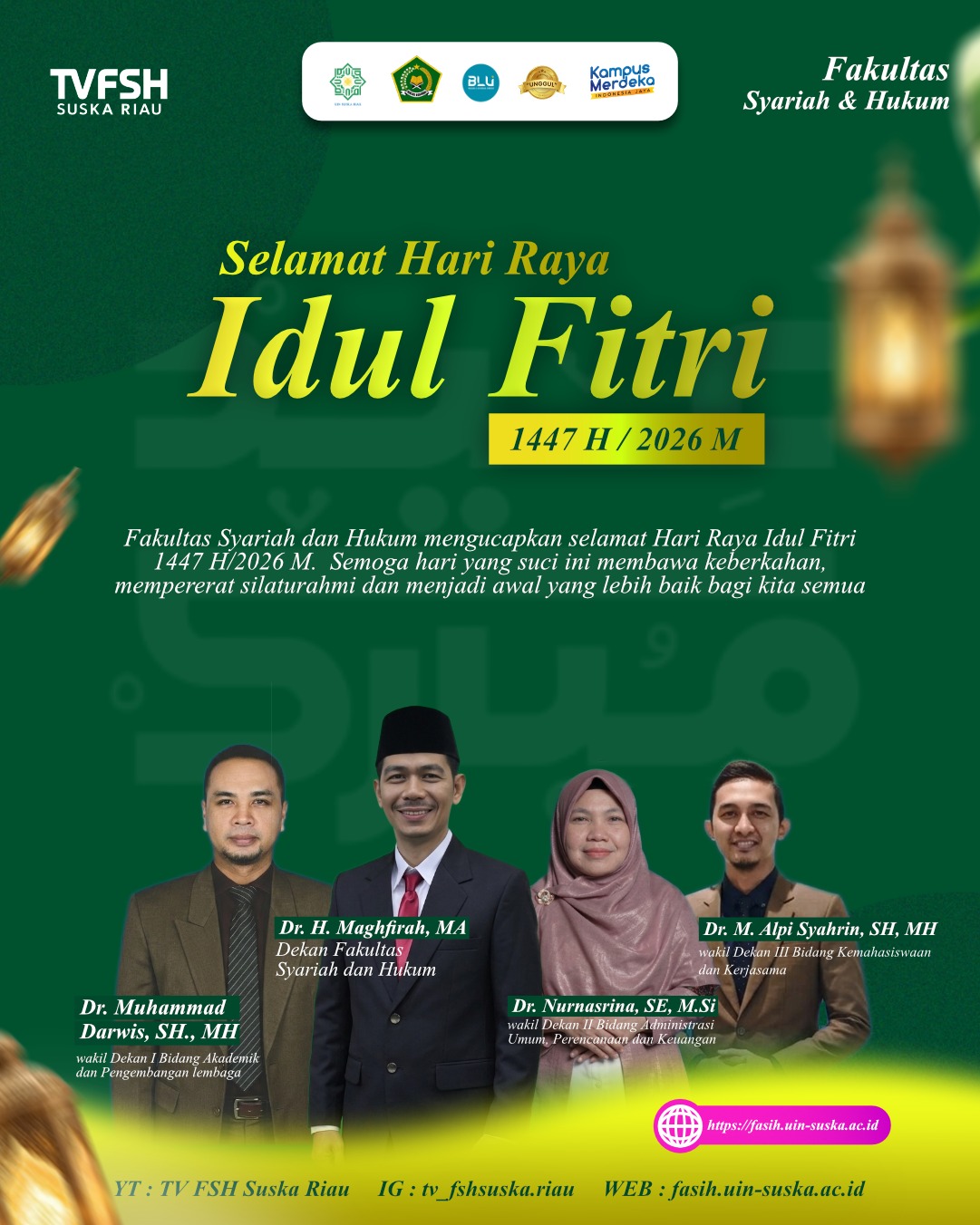 Dekan dan Civitas Akademika Fakultas Syariah dan Hukum Ucapkan Selamat Hari Raya Idul Fitri 1447 H