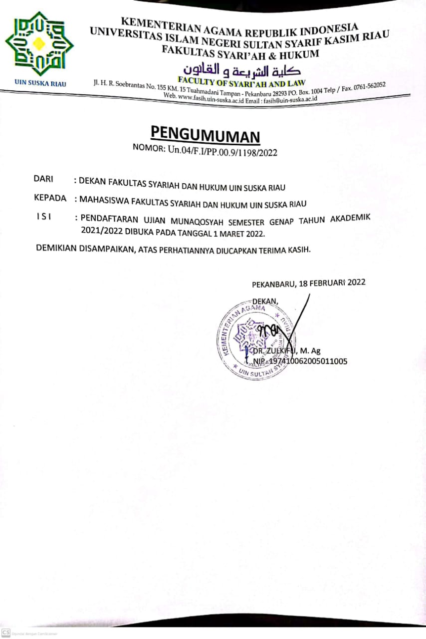 PENGUMUMAN PEMBUKAAN MUNAQASYAH