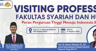 Pekanbaru — Fakultas Syariah dan Hukum (FSH) Universitas Islam Negeri Sultan Syarif Kasim (UIN Suska) Riau kembali menunjukkan komitmennya dalam memperkuat kualitas akademik dan visi kebangsaan melalui kegiatan Visiting Professor yang menghadirkan narasumber nasional, Prof. Dr. Slamet Wahyudi, ST., MT, selaku Dewan Eksekutif BAN-PT. Kegiatan yang mengusung tema “Peran Perguruan Tinggi Menuju Indonesia Emas 2045” ini …